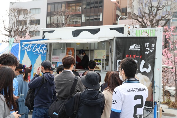 この日は日差しも比較的暖かく、濃厚なミルクの味わいを楽しむサポーターの姿が多く見られました。