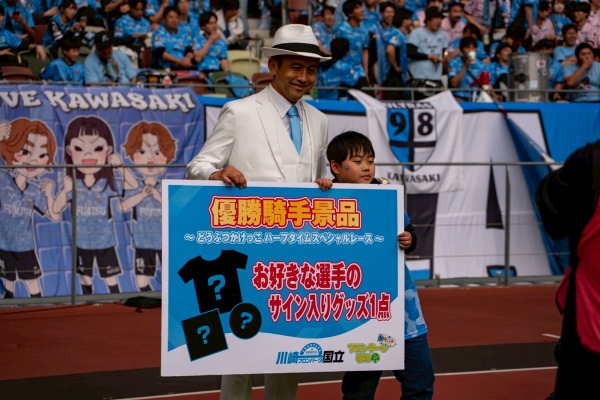 プレゼンターとして、今季より川崎フロンターレのFROに就任した稲本潤一さんが登場し、スタンドからは大きな拍手が送られました。