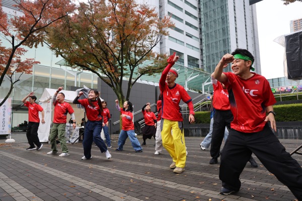 前述の通り、この日は断続的な小雨もありましたが、NEC玉川ルネッサンスシティに設置された屋根も活用しながら、小雨決行となりました。
