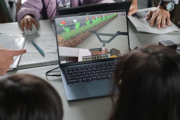 「マイクラで学ぶ自転車の交通安全」ワークショップを実施し、子どもたちが熱心に取り組んでいました。