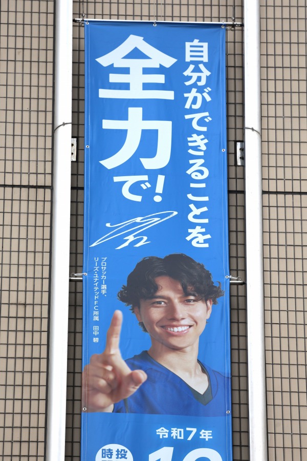 サポーターエリアから子どもたちへのメッセージが横断幕で掲出されました。